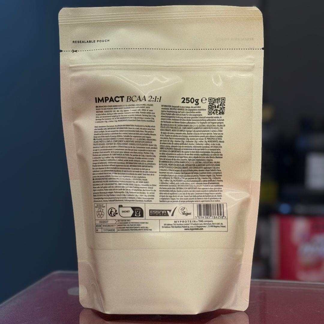 - مشخصات بی سی ای ای پودری برند مای پروتئین وزن ۲۵۰ گرم ساخت کشور امارات طعم دار پودر