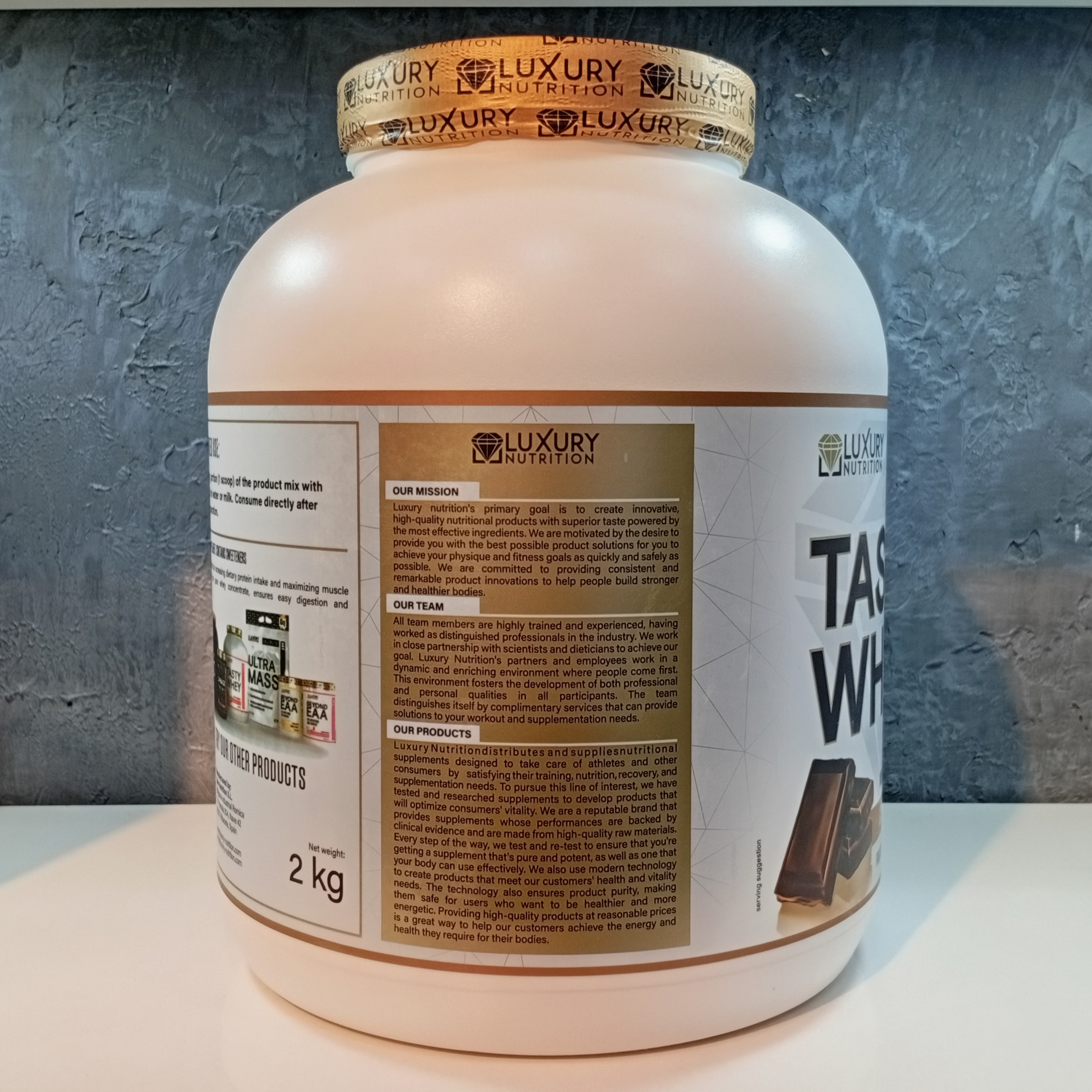 - مشخصات پروتئین وی نام برند: لاکچری نوتریشن وزن: 2کیلو پودر طعم دار
