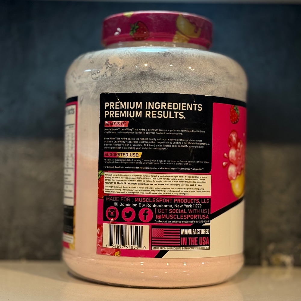 - مشخصات پروتئین وی نام برند: ماسل اسپرت طعم بستنی توت فرنگی وزن: ۲۲۷۵ گرم ساخت امارات